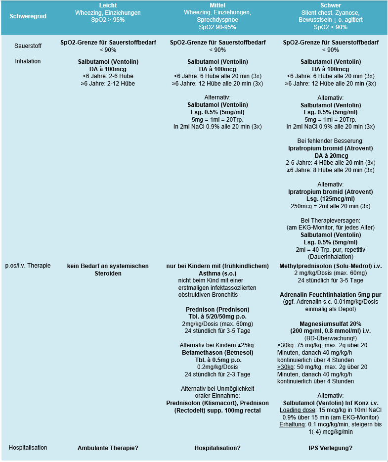 Autoren: Prof. N. Regamey, Dr. M. Lurà (Pädiatrische Pneumologie), KD Dr. A. Donas, KD Dr. med. I. Bachmann (Kindernotfall), Prof. Dr. M. Stocker (Kinderintensivstation)