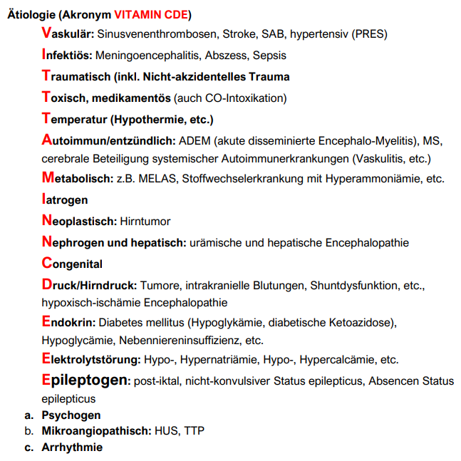 - Bei Koma: Lumbalpunktion kontraindiziert, primär Bildgebung. LP je nach Befund (z.B. Encephalitis) erwägen